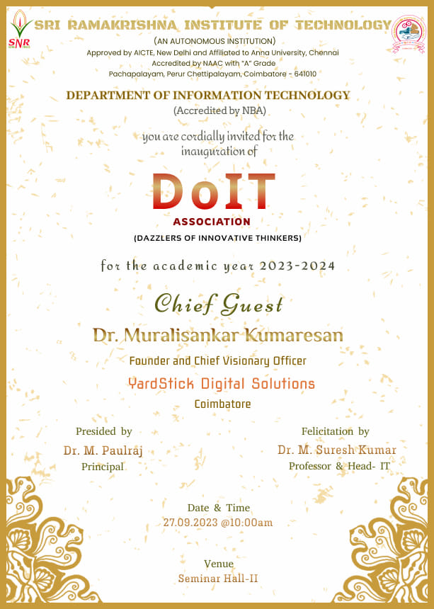 DoIT Association Inauguration 2023 Map Unavailable Date/Time Date(s) - 27/09/202312:00 am Categories Institutional Function