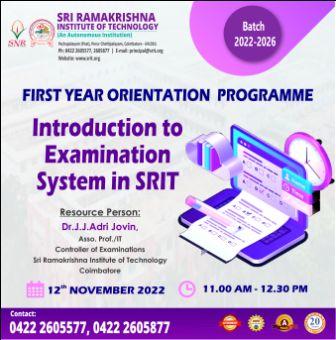First Year B.E/B.tech Orientation Programme 2022:Introduction to Examination Reforms in SRIT