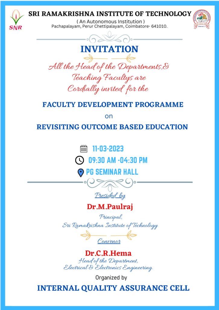 IQAC CELL :FDP ON “REVISITING OUTCOME BASED EDUCATION”