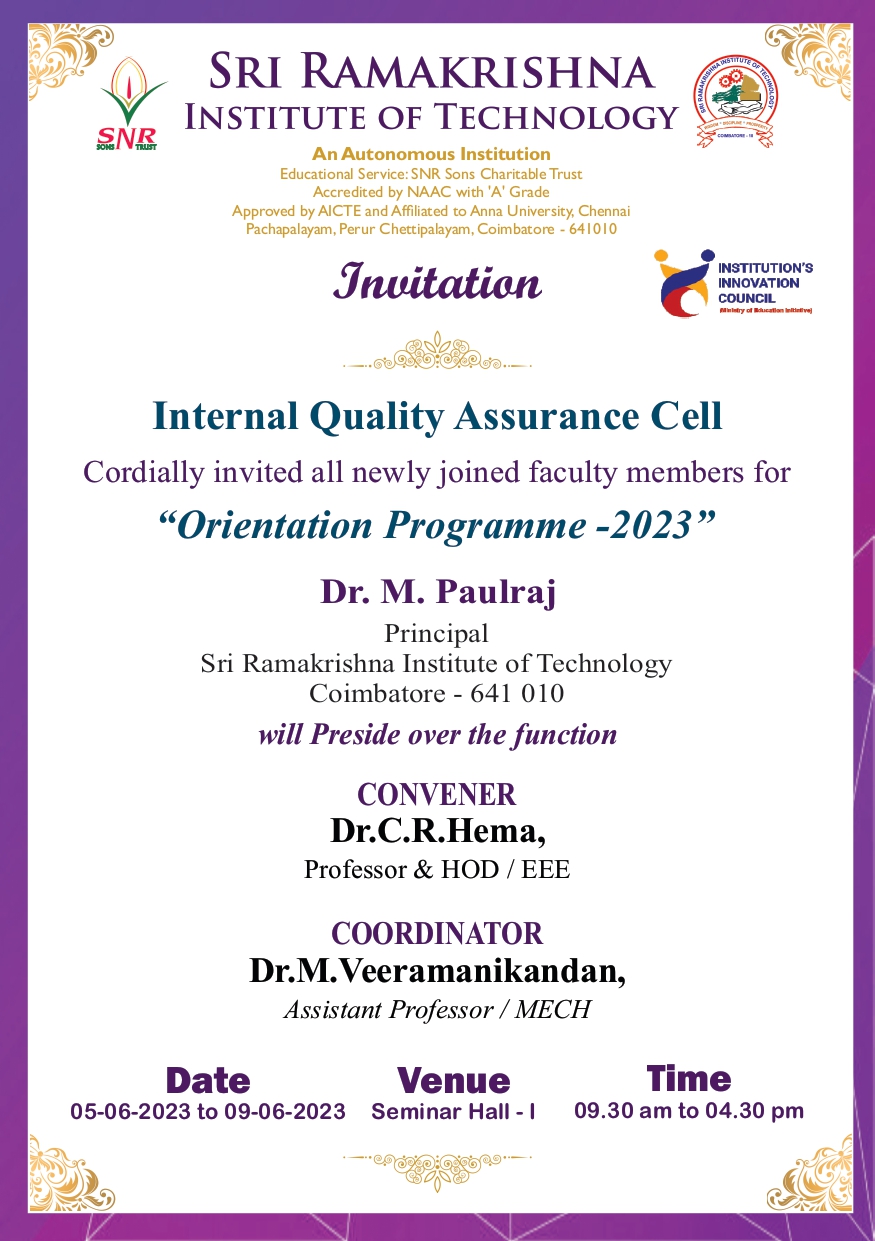 IQAC CELL – “ORIENTATION PROGRAMME 2023” Map Unavailable Date/Time Date(s) - 05/06/2023 - 09/06/20239:00 am - 4:30 pm Categories Institutional Function